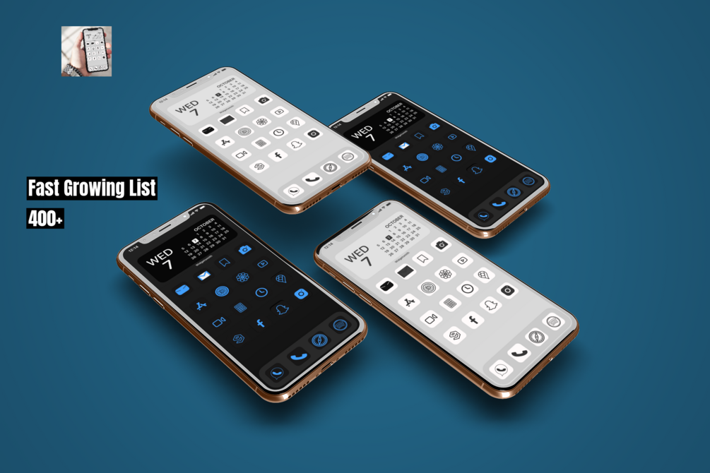 400+ Minimal iPhone IOS 14 Icon Pack || Black, White, Blue|| Custom Deigned